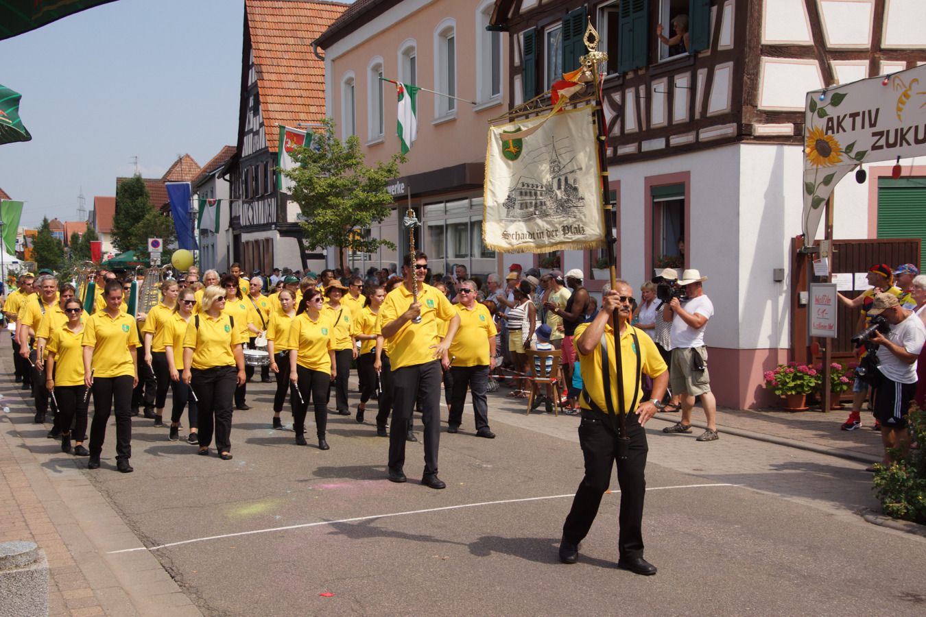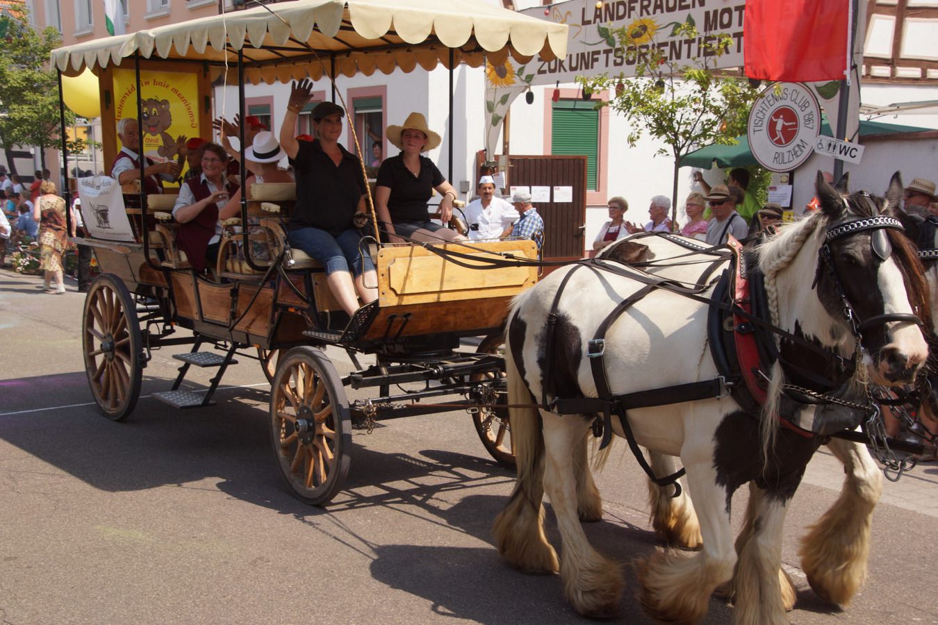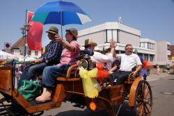 Die Kutsche mit Offiziellen präsentierte mit dem Schirmherr des Heimatfestes, Ortsbürgermeister Reiner Hör, dem Vorsitzenden der Kulturgemeinde Rülzheim, Kurt Werling, sowie Vertretern der beiden Kirchen, Pfarrer Michael Kolb und Presbyter Rainer Übel, die gute Zusammenarbeit aller gesellschaftlichen Schichten des Dorfes. Stark vertreten waren die Außengemeinden Hördt, Kuhardt und Leimersheim. Die Rheingemeinde stellte mit etlichen Vereinen und weit über 200 Teilnehmern, unter ihnen auch Verbandsbürgermeister Matthias Schardt, die weitaus größte Gruppe.