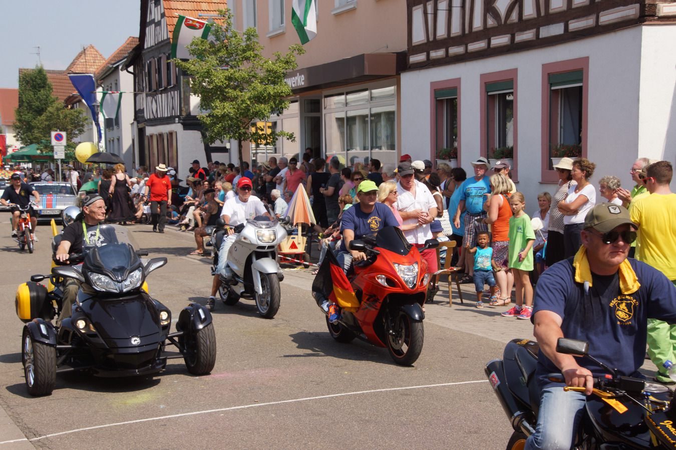 Mehrere tausend Besucher, wegen der Hitze allerdings wesentlich weniger als bei früheren Heimatfesten, säumten die Straßen. Sie hatten sich mit Sonnen- und Regenschirmen gegen die Sonne geschützt, den Schatten von Bäumen aufgesucht, um den gut einstündigen Vorbeimarsch ohne gesundheitliche Probleme bewundern zu können. Glücklicherweise musste der Malteser Hilfsdienst kaum helfend einschreiten. „Die Besucher waren gut vorbereitet“, so der Einsatzleiter auf Nachfrage.