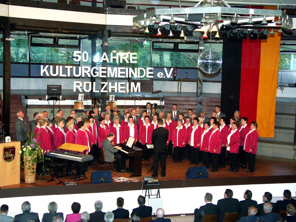 Bei einem Gespräch mit Zeitzeugen „Wie war es damals vor 50 Jahren?“ wird an die Gründung der Kulturgemeinde im Jahre 1955 erinnert, zudem ist ein filmischer Rückblick auf fünfzig Jahre Kulturgemeinde geplant. Das musikalische Programm gestalten die Gesangvereine Männerchor und Einigkeit, das Musiktheater, Tanzaufführungen von Karnevalsgesellschaft und Tanzsportclub Royal sowie die Kapelle des Musikvereins.