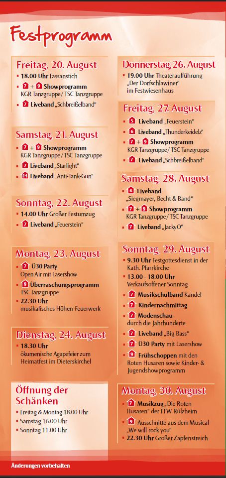 Ein Überblick über die täglichen Höhepunkte des Heimatfestprogrammes